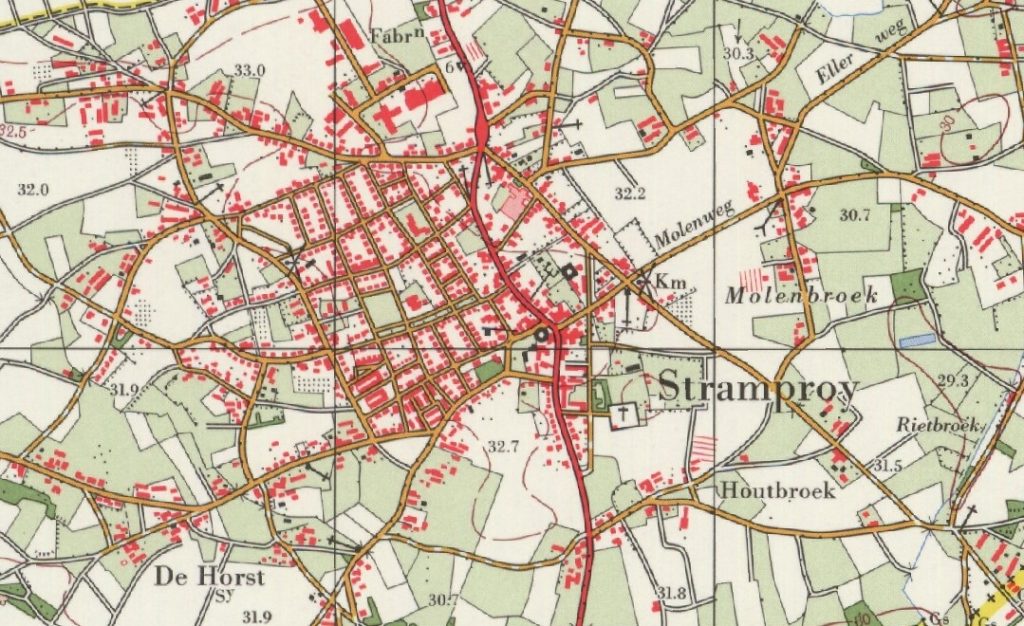 Ook bij het op volgorde sorteren van topografische kaarten bleek ook dat Stramproy tussen de jaren 50 en 80 fors gegroeid is van enkele straten met verspreidde boerderijen tot een echte bebouwde kom met veel burgerwoningen en extra winkelcentrum: de 7-winkels. Er waren zelfs ooit plannen voor een tweede kerk.