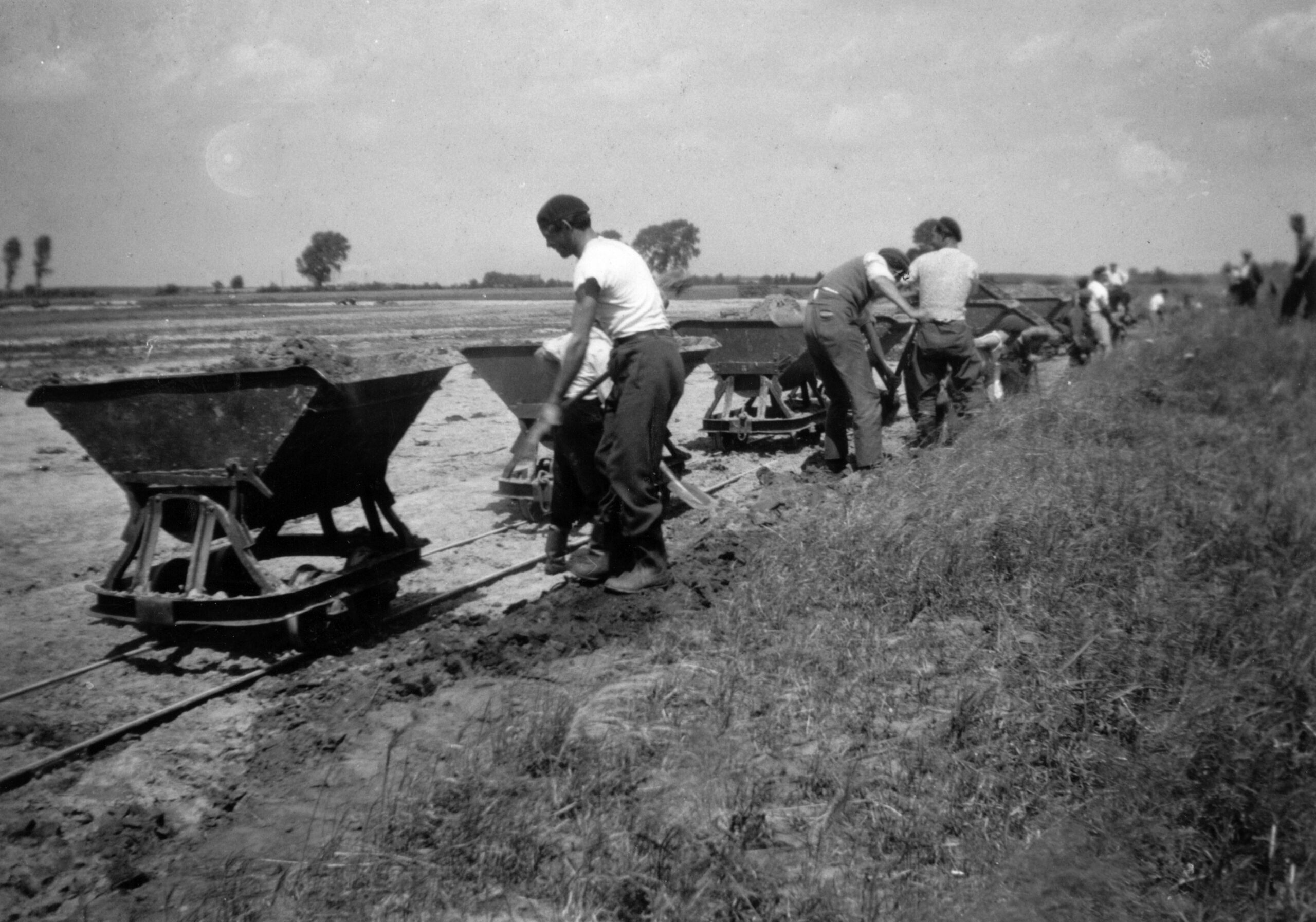 Namen onbekend, ontginning landschap Wijfelterbroek met kiepwagen