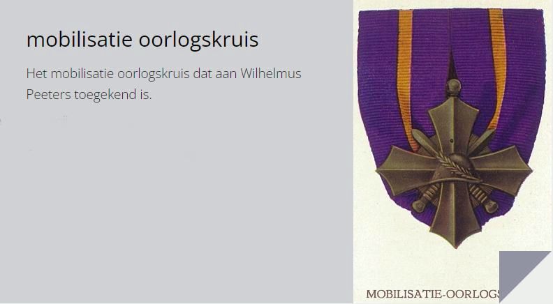 Peeters ‘Pieëterske’ Wilhelmus Willem, mobilisatie oorlogskruis